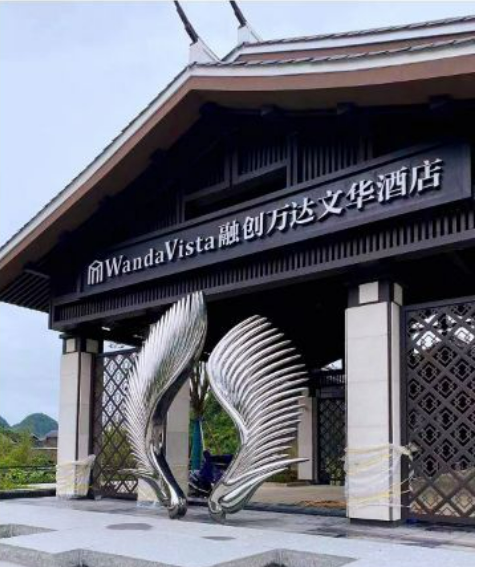 融創(chuàng)酒店群占地面積約55萬(wàn)平方米,整體的設(shè)計(jì)理念源于風(fēng)景秀麗的桂林山水,酒店采用了新侗瑤民族建筑設(shè)計(jì)元素,水上大堂、康體、會(huì)議中心、特色餐廳及108套低層湖景客房組合在一起。